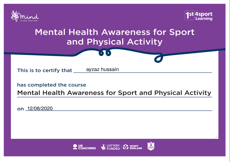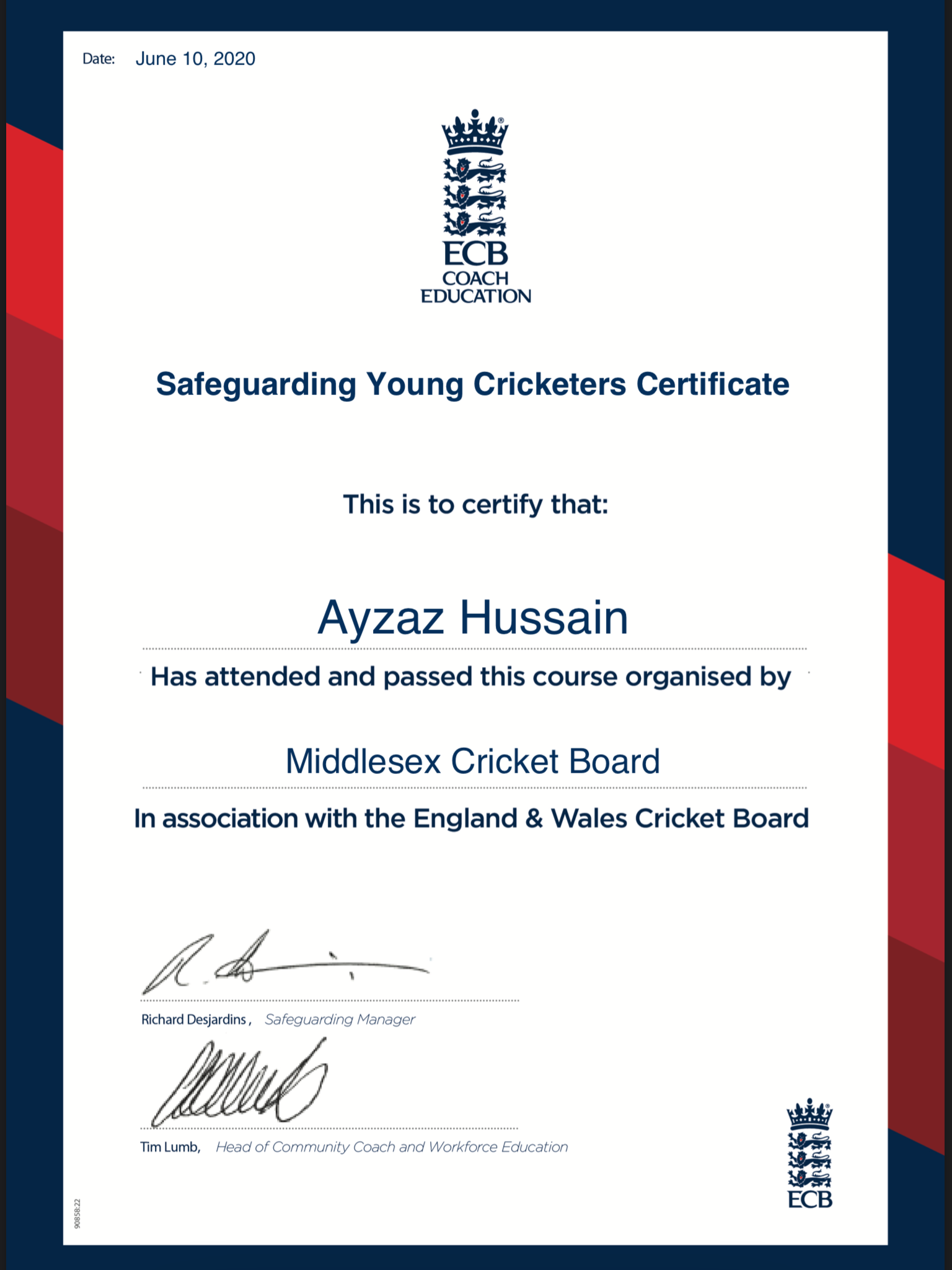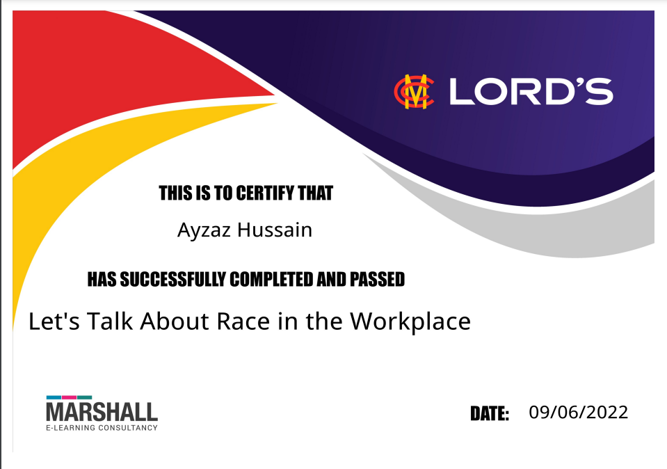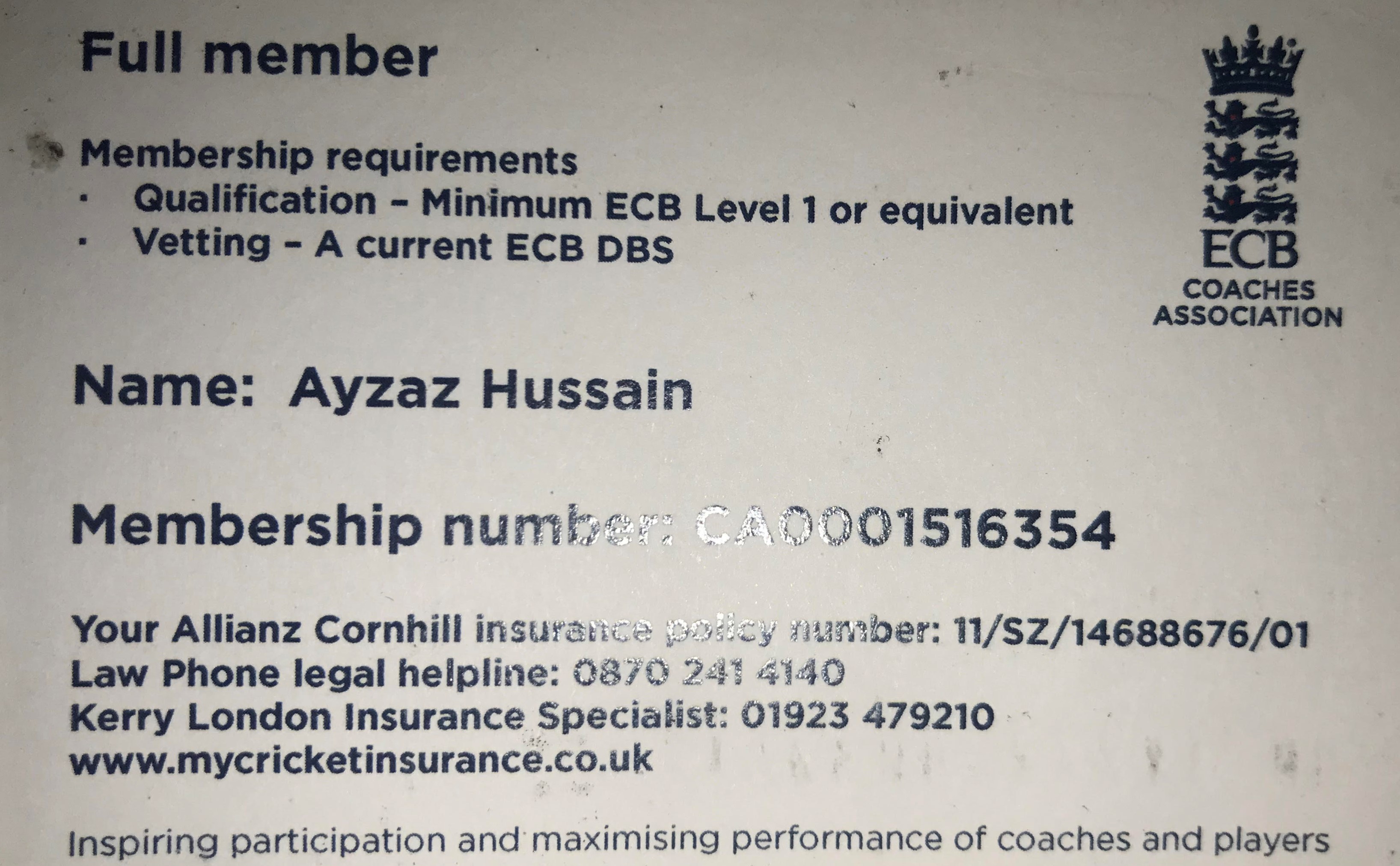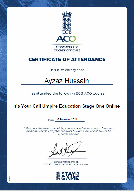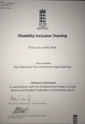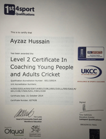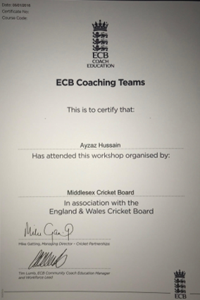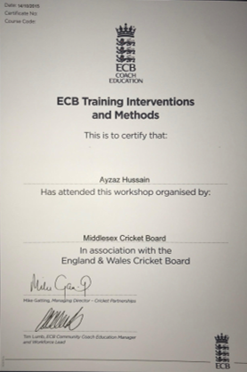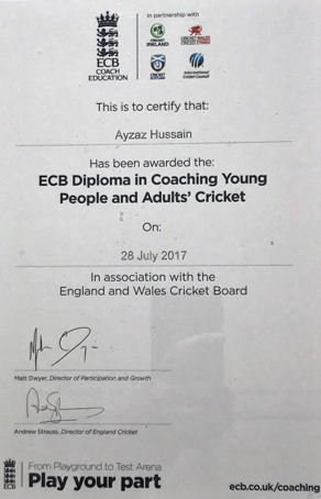 and having previously completed all my secondary education (ECB Level 2, ECB CPD's and the ECB Diploma(Level 2.5) )