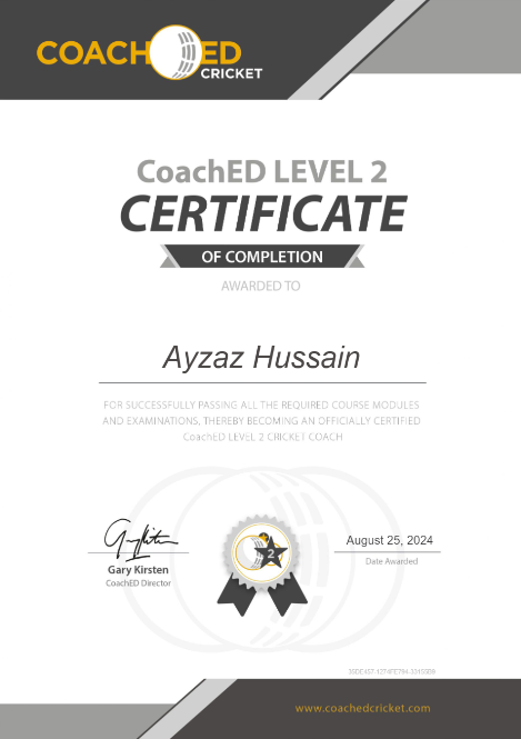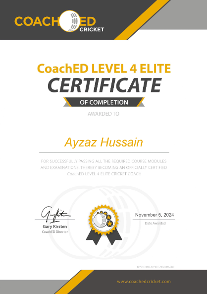 CoachED Level 4 ELITE [mentored by Gary Kirsten] and