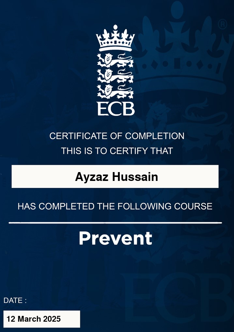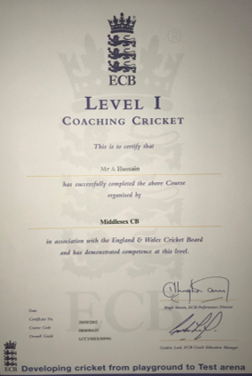 and having previously completed all my secondary education (ECB Level 2, ECB CPD's and the ECB Diploma(Level 2.5) )