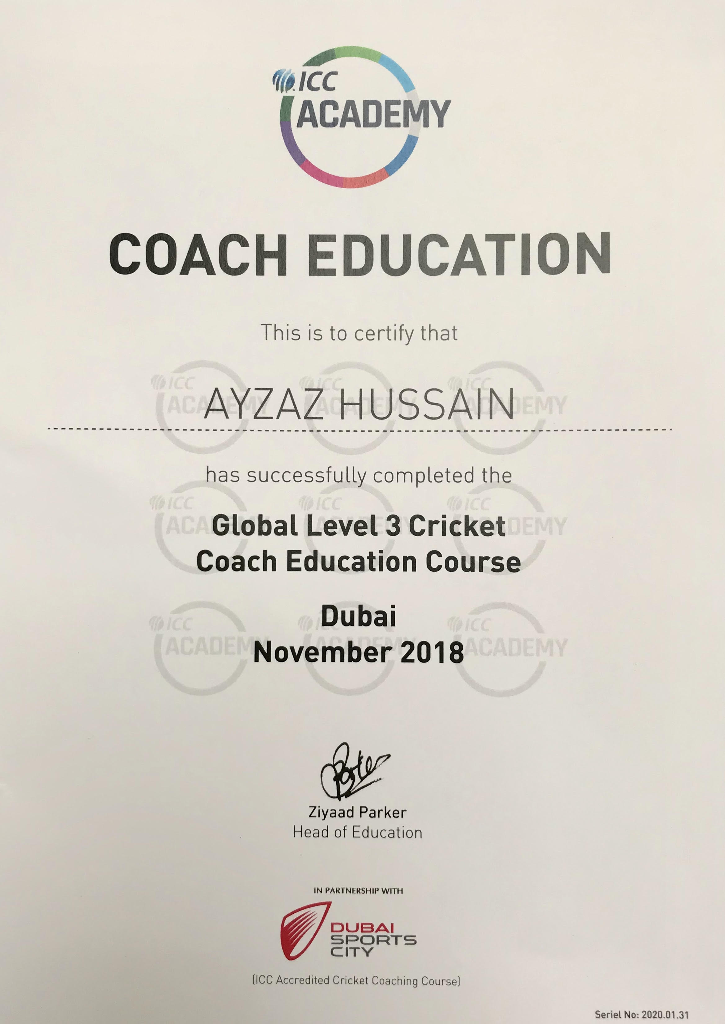 ICC Global High Performance Level 3 coaching program from the ICC Academy in Dubai
