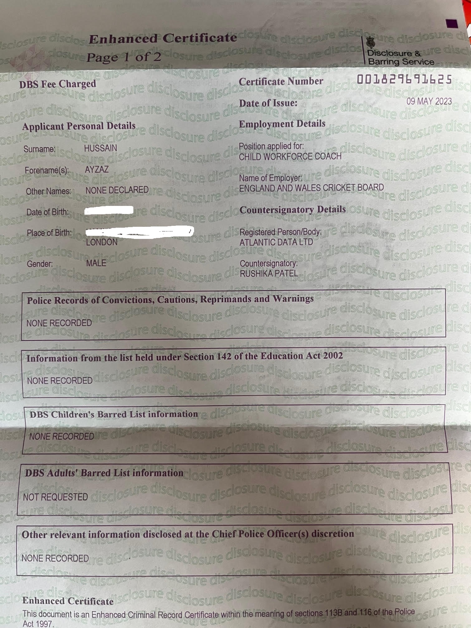 Ensuring all individuals working within cricket at, or for, the club are recruited and appointed in accordance with ECB guidelines and relevant legislation.